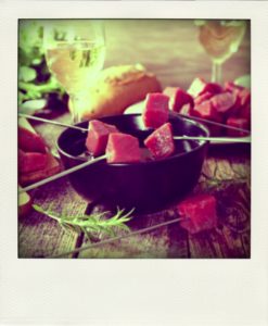 Tra i piatti più significativi della mia infanzia, ricordo: gli strozzapreti con salsiccia in un ristorante nell’entroterra romagnolo, la faraona arrosto o la gallina ripiena a Natale, cotechino e lenticchie a Capodanno; in pizzeria la capricciosa, a cena il salame nostrano, ma solo una fettina. Con gli zii, qualche volta, la fondue bourguignonne.