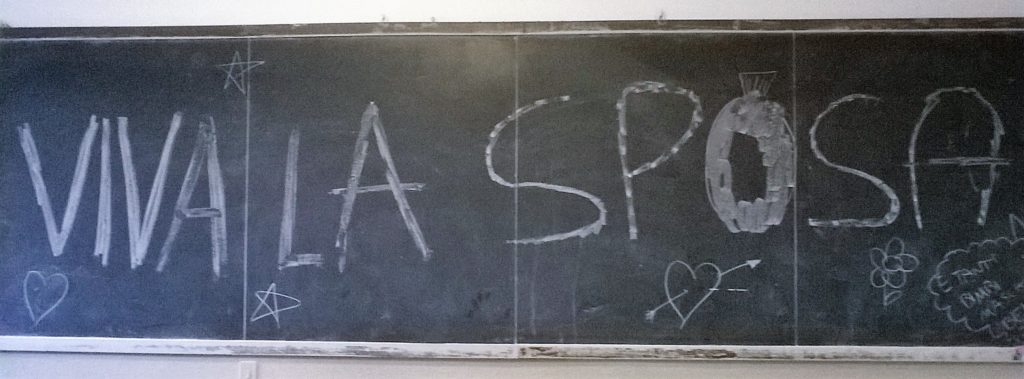 • commuoversi per l’importanza che gli studenti danno al fatto che la loro professoressa si sposi e per l’affettuosa allegria di cui la circondano; dispiacersi per la loro delusione quando scoprono che la promessa sposa non intende: